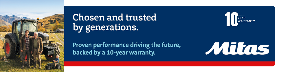 Mitas tractor tyres offer you a high level of performance and dependability. A low 0.1% claim rate over five years in New Zealand shows that Mitas tyres are not just reliable but also durable. We trust them so much we have extended the warranty to 10 years!